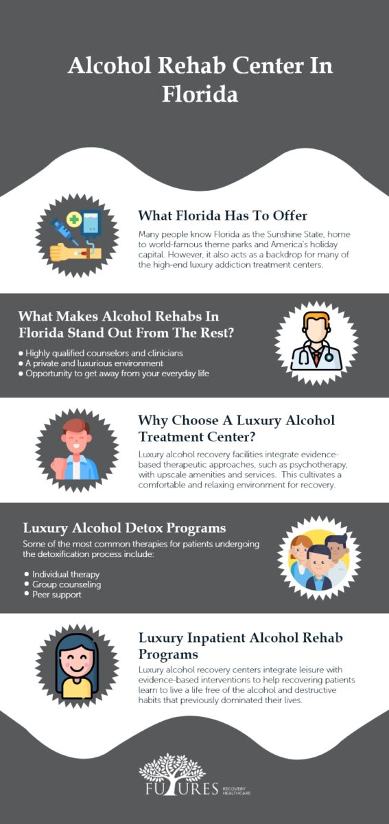 Many Florida alcohol treatment facilities also provide gender-specific services to cater to women and men’s different needs, and it’s also the home of most luxurious rehabs.